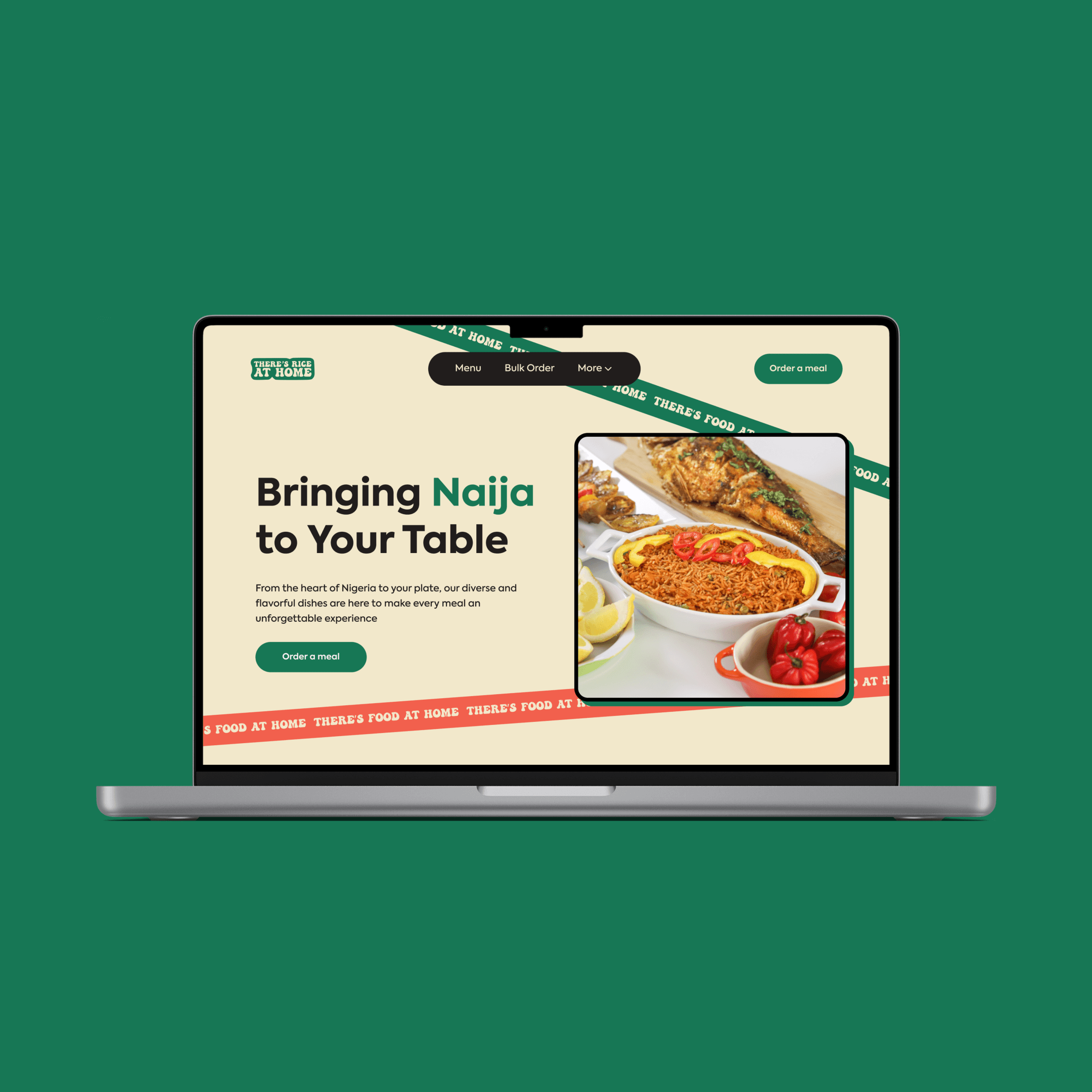 There's Rice at Home" is a Nigerian restaurant in the UK that aims to bring the authentic taste of home-cooked meals to our customers. The unique selling proposition lies in their dedication to replicating the flavours, warmth, and nostalgia of traditional Nigerian cuisine. They believe that nothing beats the comfort and satisfaction of a home-cooked meal, and strive to create a dining experience that feels like being welcomed into a Nigerian home.